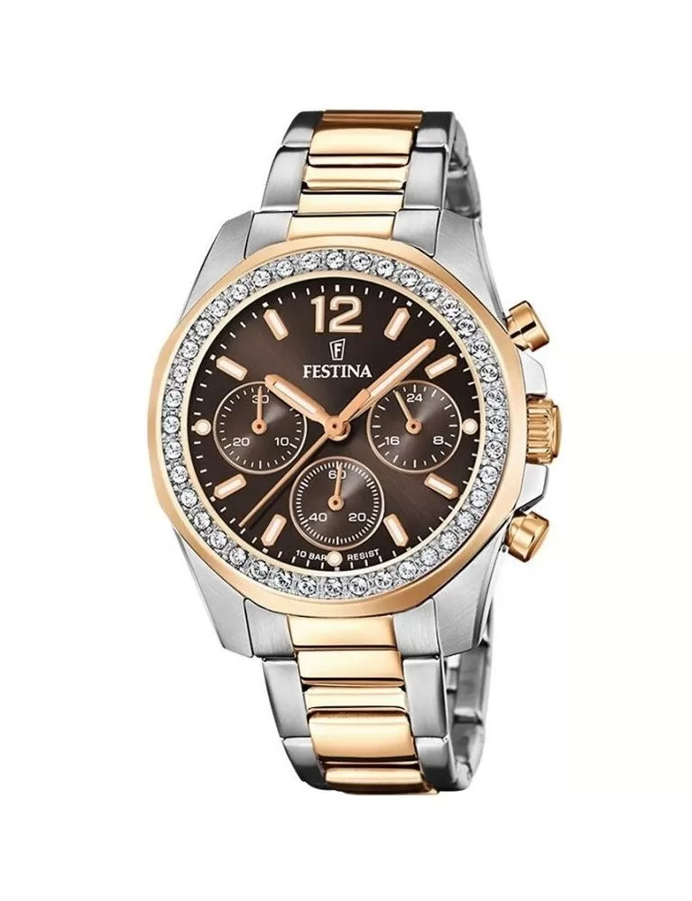 Značka Festina se pyšní více než stoletou tradicí na světovém trhu, která začíná roku 1902 v jedné švýcarské hodinářské manufaktuře v městečku La Chaux de Fonds. Věnovala se výrobě mechanických hodinek a to do roku 1984, kdy značku převzal Miguel Rodriquez a začal i se stojky quartzovými. Nyní je značka Festina součástí skupiny Festina Group se sídlem v Barceloně a s výrobními centry ve Švýcarsku, Španělsku a Asii. Své hodinky dodává do hodinářství po celém světě. Do povědomí zákazníků se zapsala především modelovou řadou Tour de France. Festina Vám však může nabídnout celé spektrum dámských i pánských modelů od sportovních, jako je řada Tour de France, tak i elegantní kolekce jako je Mademoiselle. Hodinky značky FESTINA nikdy nezaměníte s jinou značkou. Jsou originální, nápadité a budou zároveň i dokonalým šperkem. Švýcarská značka hodinek FESTINA vyniká svým moderním designem a prvotřídní kvalitou. A to všechno za velice příznivou cenu.