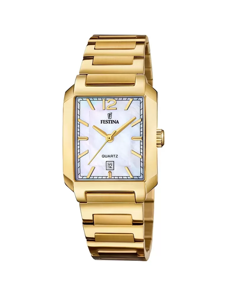 Dámské hodinky Festina 20680/2 z řady Classic Bracelet jsou moderním modelem vyznačujícím se jednoduchým a elegantním provedením. Dámský model Festina F20680 nabídne především vysoce elegantní vzhled, který bude zdárně sekundovat i společenskému obleku, minerální sklíčko a voděodolnost 5 ATM, s níž hodinky zvládnou i mytí rukou. Na pozici 6. hodiny se nachází jednoduchý ukazatel data. Dámské hodinky z kolekce Classic Bracelet jsou velice slušivé. Najdete zde číselníky, s hladkými indexy nebo arabskými číslicemi. Jistě také zaujmou svým hranatým pouzdrem.