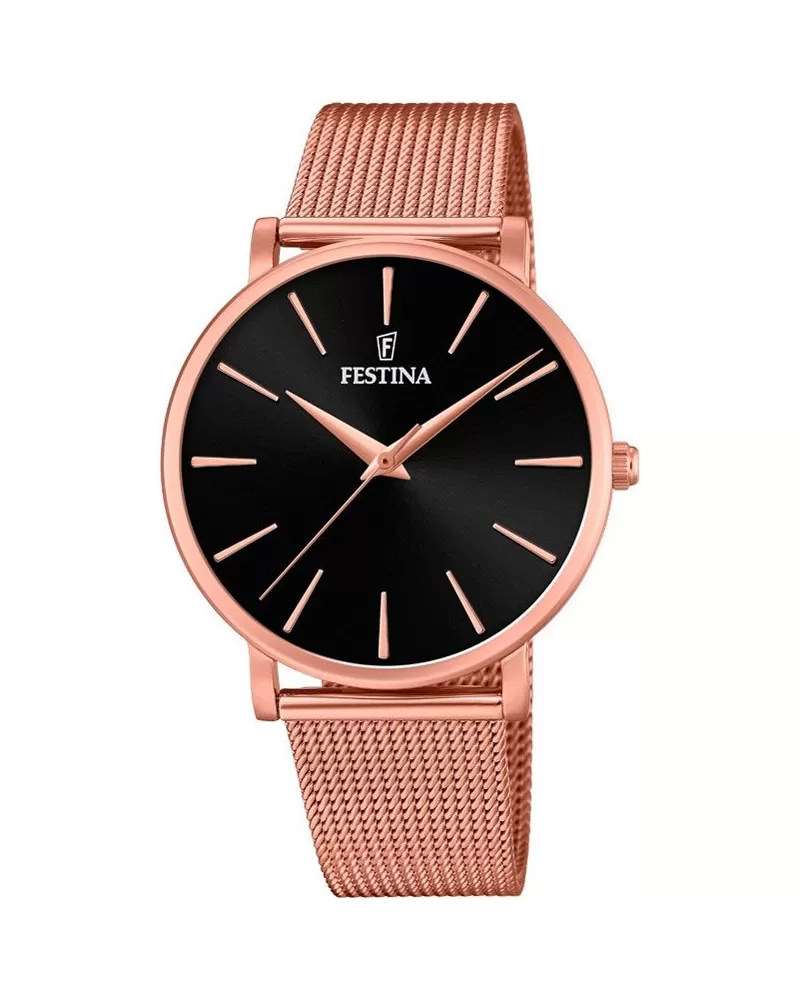 Elegantní hodinky v rose-gold PVD úpravě s milánským náramkem a s paprskově broušeným ciferníkem. Tento model je vyrobený z oceli, která vyniká svou tvrdostí a odolností.