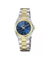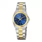 Dámské quartzové hodinky na ocelovém tahu s částečnou PVD úpravou zlaté barvy, která jemně kontrastuje s modrým číselníkem. Vodotěsnost dosahující 50 metrů umožňuje plavání.