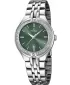 Dámské bateriové hodinky na ocelovém náramku vhodné pro každodenní nošení. Zelený číselník, chráněný minerálním sklem, obklopuje luneta zdobená čirými zirkony. Hodinky disponují ukazatelem data a vodotěsností 5 ATM.