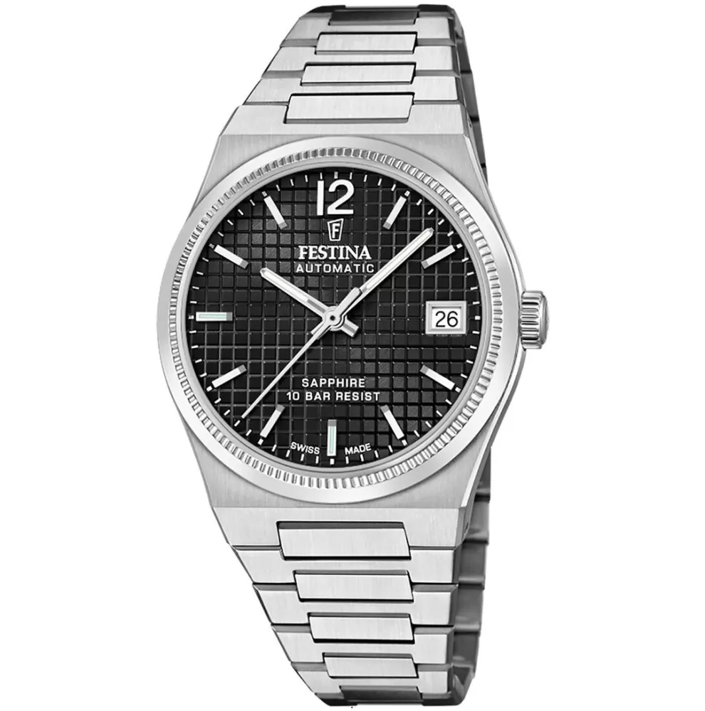 Značka Festina se pyšní více než stoletou tradicí na světovém trhu, která začíná roku 1902 v jedné švýcarské hodinářské manufaktuře v městečku La Chaux de Fonds. Věnovala se výrobě mechanických hodinek a to do roku 1984, kdy značku převzal Miguel Rodriquez a začal i se stojky quartzovými. Nyní je značka Festina součástí skupiny Festina Group se sídlem v Barceloně a s výrobními centry ve Švýcarsku, Španělsku a Asii. Své hodinky dodává do hodinářství po celém světě. Do povědomí zákazníků se zapsala především modelovou řadou Tour de France. Festina Vám však může nabídnout celé spektrum dámských i pánských modelů od sportovních, jako je řada Tour de France, tak i elegantní kolekce jako je Mademoiselle. Hodinky značky FESTINA nikdy nezaměníte s jinou značkou. Jsou originální, nápadité a budou zároveň i dokonalým šperkem. Švýcarská značka hodinek FESTINA vyniká svým moderním designem a prvotřídní kvalitou. A to všechno za velice příznivou cenu.