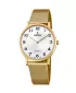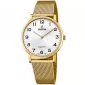 Vysoce elegantní model pro ženy je vyroben z velmi kvalitní nerezové ocele, která je ošetřena PVD povrchovou úpravou v barvě žlutého zlata. Kulaté pouzdro je vybaveno švýcarským strojkem a baterií s dvouletou životností. Bílý číselník je velmi přehledný, obsahuje pouze arabské číslice v černé barvě. Celým model doplňuje milánský tah, která je velmi pohodlný.