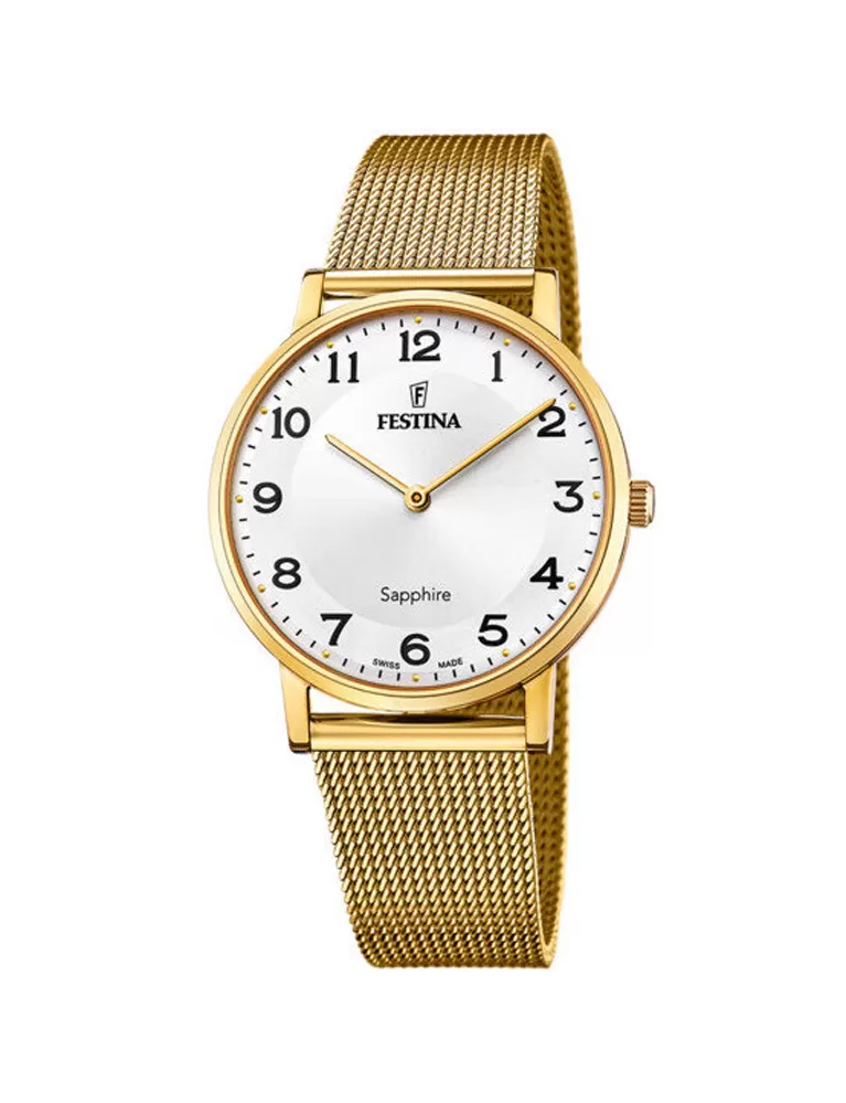 Značka Festina se pyšní více než stoletou tradicí na světovém trhu, která začíná roku 1902 v jedné švýcarské hodinářské manufaktuře v městečku La Chaux de Fonds. Věnovala se výrobě mechanických hodinek a to do roku 1984, kdy značku převzal Miguel Rodriquez a začal i se stojky quartzovými. Nyní je značka Festina součástí skupiny Festina Group se sídlem v Barceloně a s výrobními centry ve Švýcarsku, Španělsku a Asii. Své hodinky dodává do hodinářství po celém světě. Do povědomí zákazníků se zapsala především modelovou řadou Tour de France. Festina Vám však může nabídnout celé spektrum dámských i pánských modelů od sportovních, jako je řada Tour de France, tak i elegantní kolekce jako je Mademoiselle. Hodinky značky FESTINA nikdy nezaměníte s jinou značkou. Jsou originální, nápadité a budou zároveň i dokonalým šperkem. Švýcarská značka hodinek FESTINA vyniká svým moderním designem a prvotřídní kvalitou. A to všechno za velice příznivou cenu.