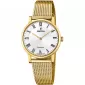 Dámské náramkové hodinky jsou vyrobeny z vysoce kvalitní nerezové ocele. Ocel je ošetřena PVD povrchovou úpravou v barvě žlutého zlata. Kulaté pouzdro je vybaveno spolehlivým strojkem a baterií s dvouletou životností. Bílý číselník obsahuje černé římské číslice.