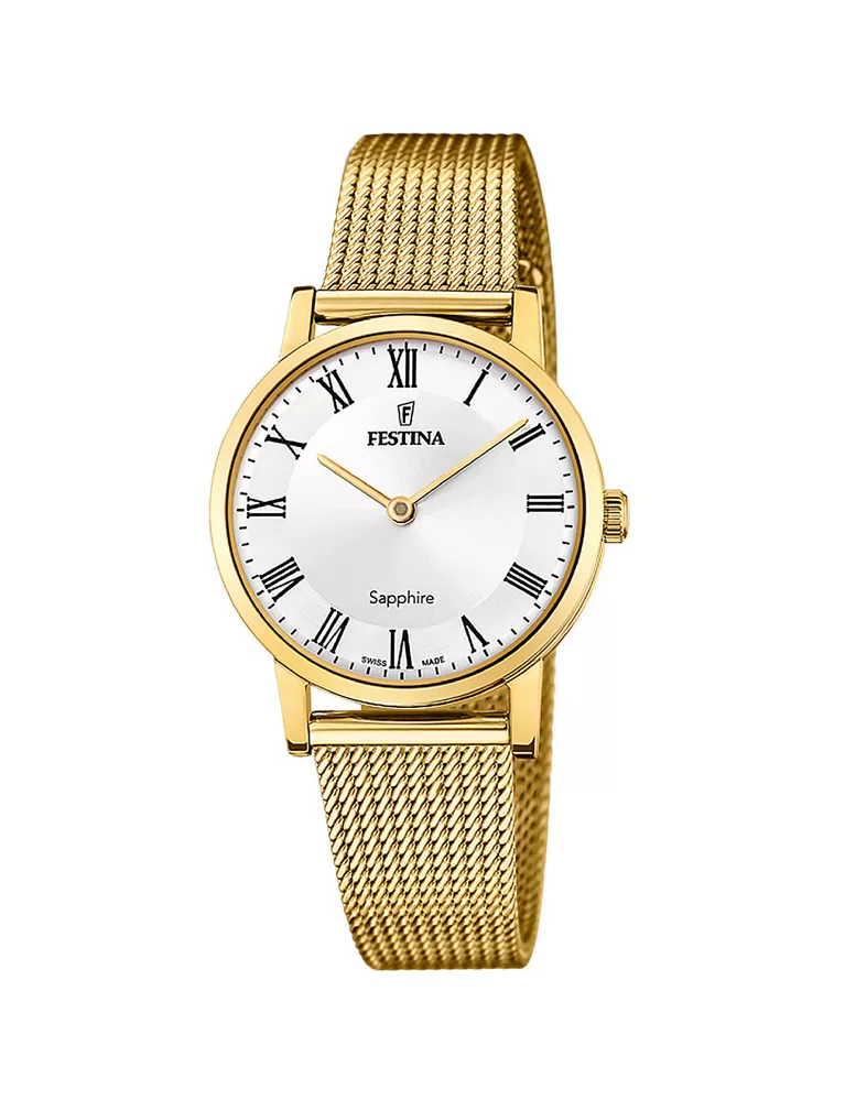 Značka Festina se pyšní více než stoletou tradicí na světovém trhu, která začíná roku 1902 v jedné švýcarské hodinářské manufaktuře v městečku La Chaux de Fonds. Věnovala se výrobě mechanických hodinek a to do roku 1984, kdy značku převzal Miguel Rodriquez a začal i se stojky quartzovými. Nyní je značka Festina součástí skupiny Festina Group se sídlem v Barceloně a s výrobními centry ve Švýcarsku, Španělsku a Asii. Své hodinky dodává do hodinářství po celém světě. Do povědomí zákazníků se zapsala především modelovou řadou Tour de France. Festina Vám však může nabídnout celé spektrum dámských i pánských modelů od sportovních, jako je řada Tour de France, tak i elegantní kolekce jako je Mademoiselle. Hodinky značky FESTINA nikdy nezaměníte s jinou značkou. Jsou originální, nápadité a budou zároveň i dokonalým šperkem. Švýcarská značka hodinek FESTINA vyniká svým moderním designem a prvotřídní kvalitou. A to všechno za velice příznivou cenu.