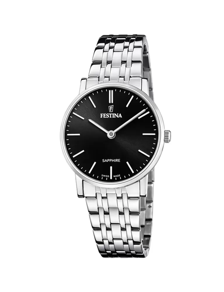 Značka Festina se pyšní více než stoletou tradicí na světovém trhu, která začíná roku 1902 v jedné švýcarské hodinářské manufaktuře v městečku La Chaux de Fonds. Věnovala se výrobě mechanických hodinek a to do roku 1984, kdy značku převzal Miguel Rodriquez a začal i se stojky quartzovými. Nyní je značka Festina součástí skupiny Festina Group se sídlem v Barceloně a s výrobními centry ve Švýcarsku, Španělsku a Asii. Své hodinky dodává do hodinářství po celém světě. Do povědomí zákazníků se zapsala především modelovou řadou Tour de France. Festina Vám však může nabídnout celé spektrum dámských i pánských modelů od sportovních, jako je řada Tour de France, tak i elegantní kolekce jako je Mademoiselle. Hodinky značky FESTINA nikdy nezaměníte s jinou značkou. Jsou originální, nápadité a budou zároveň i dokonalým šperkem. Švýcarská značka hodinek FESTINA vyniká svým moderním designem a prvotřídní kvalitou. A to všechno za velice příznivou cenu.
