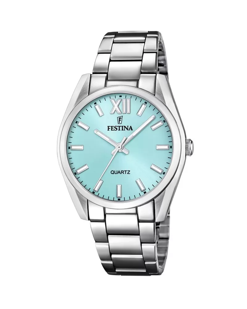 Klasické hodinky Festina jsou vyrobeny z chirurgické ocele, která je známá svými skvělými vlastnostmi. Ocel je velmi pevná, houževnatá a antialergická. Tento model dámských hodinek potěší ženy co si nepotrpí na výstřední doplňky a hledají hlavně praktičnost a eleganci. Hodinky mají kulaté pouzdro s modrým ciferníkem a hladkými indexy hodin. Indexy hodin i ručičky mají luminiscenční vrstvu, která poslouží při sledování času v noci. Hodinky se zapínají na překlápěcí sponu.