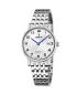 Dámský klasický model je vyroben z vysoce kvalitní nerezové ocele, kterou ocení i citlivý jedinci. Kulaté pouzdro je vybaveno spolehlivým strojkem a baterií s dvouletou životností. Bílý číselník chrání safírové sklo. Číselník je vybaven datumem, který je umístěn na pozici třetí hodiny. Číselník zvýrazňují tenké, elegantní ručičky v modré barvě. Hodinky jsou vhodné pro každodenní nošení.