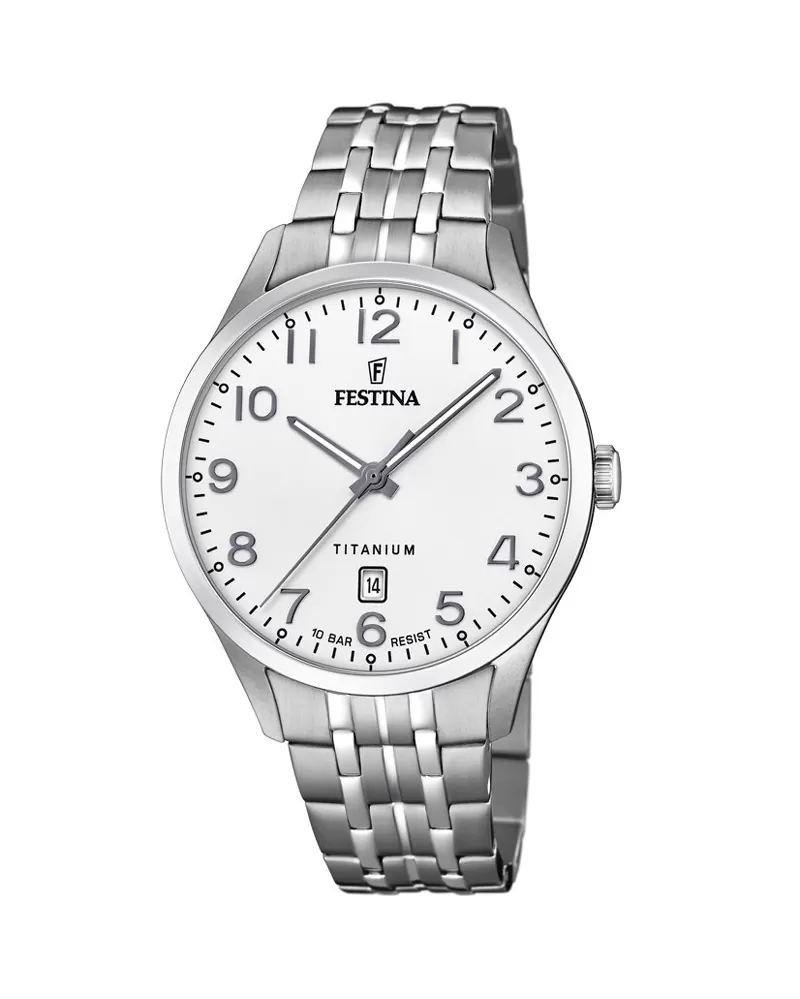 Krásné, jednoduché a velmi elegantní hodinky Festina z kolekce Titanium Date. Z titanu mají hodiny celé poudzro a některé modely i tah. Jsou odolné a lehké. Provedení ocení každý elegantní muž či žena. V kolekce najdete mnoho variant provedení. Od 5 až po 10 atmosfér vodotěsnosti, různé velikosti číselníku a různé varianty řemínku.