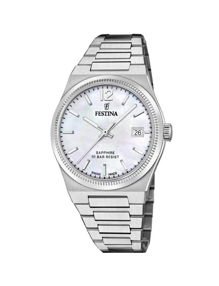 Pokud hledáte elegantní hodinky se švýcarským strojkem a za skutečně dostupnou cenu, kolekce Festina Swiss Made je více než příhodnou volbou. Festině se v ní podařilo skloubit hned několik oblíbených vlastností, kterými si vás hodinky získají. Dámský model Festina F20035 nabídne především vysoce elegantní vzhled, který bude zdárně sekundovat i společenským šatům, safírové sklíčko odolné vůči jakémukoliv poškrábaní a voděodolnost 10 ATM, díky které zvládnou i plavání. Jednoduchá úprava číselníku s indexy je skutečná klasika. Praktickou stránku hodinek doplňuje také celoocelový tah.