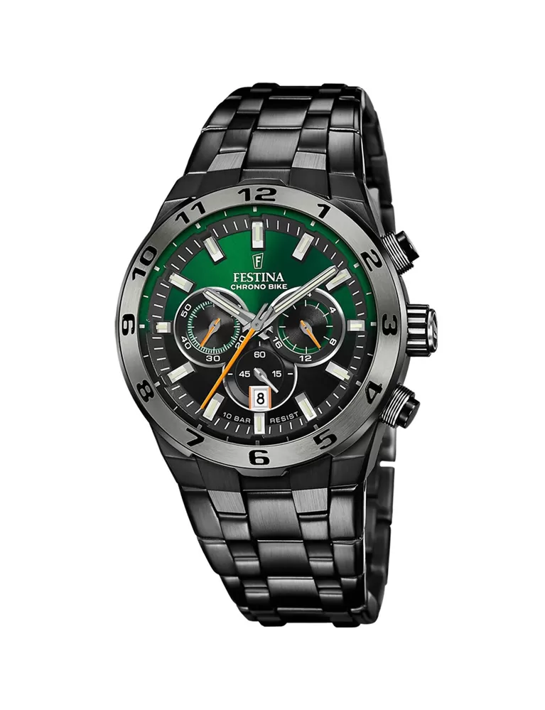 Dlouho očekávaná novinka dorazila! Výrazné barvy odkazující na cyklistické dresy silniční cyklistiky a sexy detaily připomínající cyklistické prvky. Jsou krásné a nové. Nové barvy, nový číselník i luneta. Nový nádech, navíc s něčím opravdu výjimečným. Speciální edice Festina Chrono Bike  skvěle kombinují sportovní a elegantní vzhled. Díky tomuto sladění je možné hodinky využít prakticky při každé příležitosti. Hodinky Festina Chrono Bike 20673/2 jsou vyrobeny z ušlechtilé oceli a mají možnost výběru pryžového řemínku či kovového tahu. Obě varianty jsou součástí balení, včetně nářadí na domácí výměnu. Ciferník je chráněn minerálním sklíčkem.