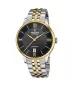 Hledáte pohodlné automatické hodinky? To vás potěší tyto hodinky s kruhovým ocelovým pouzdrem, který skrývá mechanický strojek na automatický nátah, pohyb ruky při běžném nošení tedy zajistí neustále dotahování hodinek. Přehledný ciferník obsahuje zvýrazněné indexy hodin a římské číslice zlatou barvou ve které jsou i ručičky hodin. Ciferník má také k dispozici datum, který je umístěn na pozici šesti hodin. Celý model doplňuje ocelový řemínek v kombinaci s PVD zlacením.