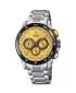 Luxusní pánské hodinky FESTINA v celo-ocelovém provedení si oblíbí každý muž, který rád sportuje. Hodinky mají žlutý ciferník zdobený třemi sub-ciferníky s funkcí stopek a 24 hodinovým formátem času. Indexy a ručičky hodinek jsou pokryty luminiscenční vrstvou, díky které uvidíte čas i při snížené viditelnosti. Hodinky navíc mají na pozici mezi 4 a 5 indexem datumovku. Hodinky disponují vodotěsností do 8 metrů s označením 100m.