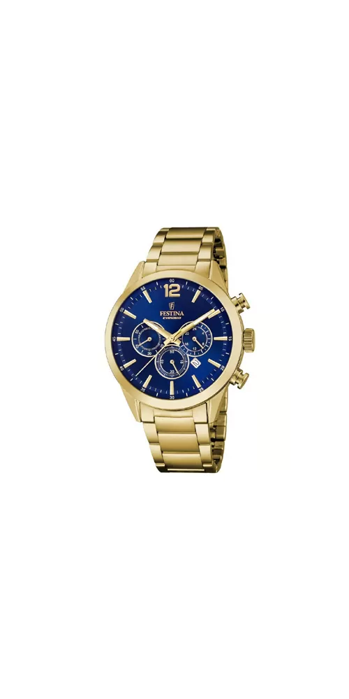 Masivní sportovní hodinky Festina zaujmou zpracováním, výrazným pouzdrem a zlacením v barvě žlutého zlata. Dopřejte si tyto hodinky.