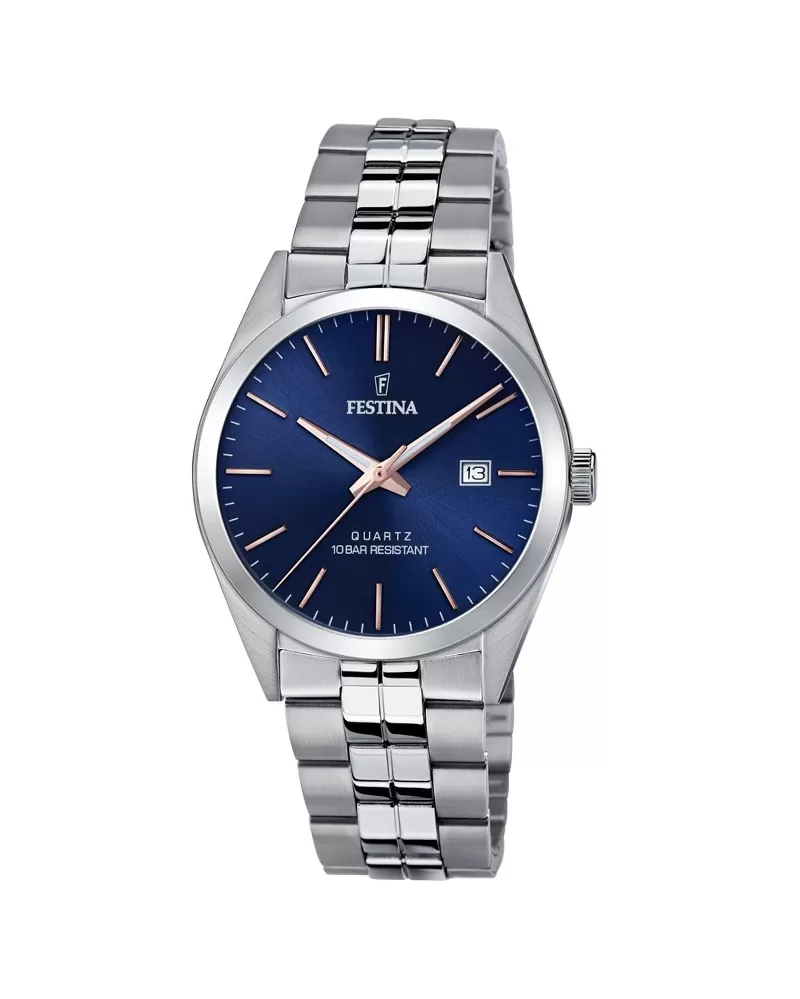 Značka Festina se pyšní více než stoletou tradicí na světovém trhu, která začíná roku 1902 v jedné švýcarské hodinářské manufaktuře v městečku La Chaux de Fonds. Věnovala se výrobě mechanických hodinek a to do roku 1984, kdy značku převzal Miguel Rodriquez a začal i se stojky quartzovými. Nyní je značka Festina součástí skupiny Festina Group se sídlem v Barceloně a s výrobními centry ve Švýcarsku, Španělsku a Asii. Své hodinky dodává do hodinářství po celém světě. Do povědomí zákazníků se zapsala především modelovou řadou Tour de France. Festina Vám však může nabídnout celé spektrum dámských i pánských modelů od sportovních, jako je řada Tour de France, tak i elegantní kolekce jako je Mademoiselle. Hodinky značky FESTINA nikdy nezaměníte s jinou značkou. Jsou originální, nápadité a budou zároveň i dokonalým šperkem. Švýcarská značka hodinek FESTINA vyniká svým moderním designem a prvotřídní kvalitou. A to všechno za velice příznivou cenu.