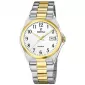 Pánské quartzové hodinky na ocelovém tahu s částečnou PVD úpravou zlaté barvy, která jemně kontrastuje s bílým číselníkem. Vodotěsnost dosahující 50 metrů umožňuje plavání.