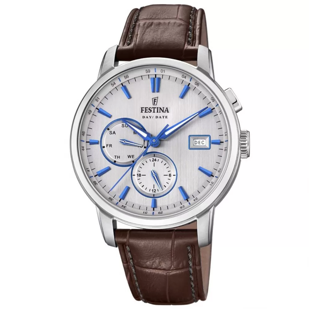 Sportovní model z kolekce Timeless Chronograph 20280/2 oblíbené značky FESTINA pro muže. Hodinky budou vkusným doplňkem do společnosti, na každodenní nošení i na sportování. Hodinky jsou se hnědým koženým řemínkem a dále disponují ukazatelem dne v týdnu, měsíce a 24 hodinovým ciferníkem.