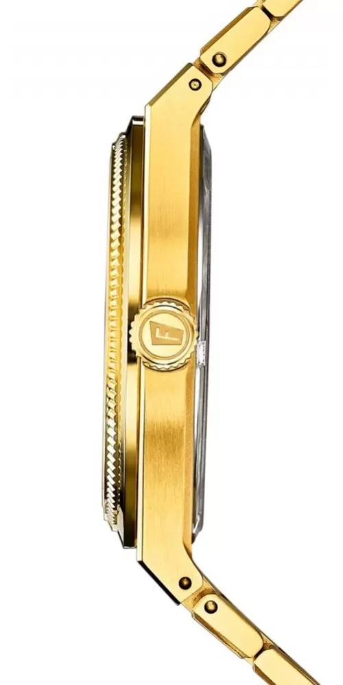 Pánské hodinky v klasickém stylu na ocelovém náramku s ocelovým pouzdrem o průměru 40 milimetrů. Pouzdro i náramek disponují PVD úpravou zlaté barvy. Strukturovaný číselník ve zlaté barvě s ukazatelem data je chráněn safírovým sklem. S vodotěsností 10ATM. Hodinky zaujmou precizním provedením a nadčasovým designem, který se hodí pro každou příležitost.