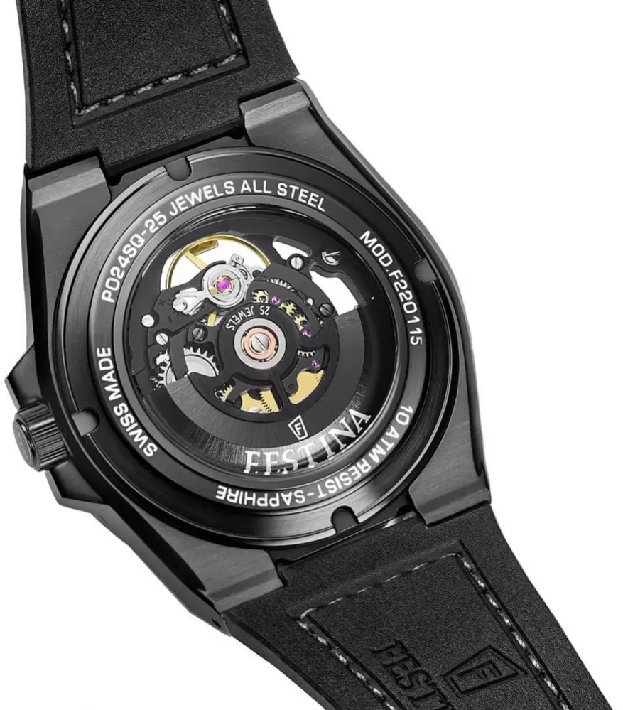 Hodinky jsou sportovně-elegantní pánský model s automatickým strojkem, který kombinuje precizní mechaniku s moderním vzhledem. Robustní pouzdro o průměru 42 mm je doplněno odolným safírovým sklíčkem a průhledným dýnkem, které umožňuje sledovat chod strojku. Řemínek je vyroben z kombinace kůže a gumy pro pohodlné nošení. Hodinky jsou vodotěsné do 10 ATM, takže zvládnou plavání i běžný kontakt s vodou. Mechanický strojek s automatickým nátahem má rezervu chodu přibližně 38 hodin a luminiscenční povrch ruček a indexů zajišťuje dobrou čitelnost i za horšího světla.