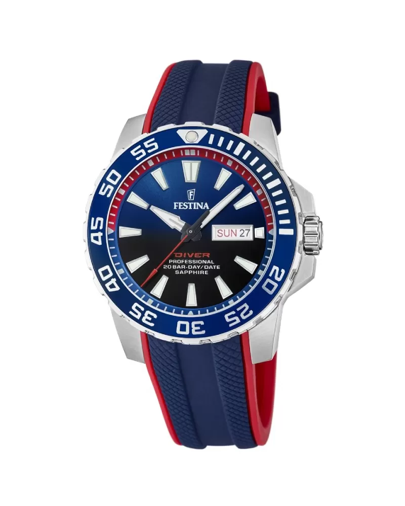 Pánské quartzové hodinky, které mají datumovku s dnem v týdnu. Vodotěsnost je 20 ATM, takže jsou hodinky vhodné pro potápění do hloubky 50 metrů. Hodinky mají safírové sklíčko.