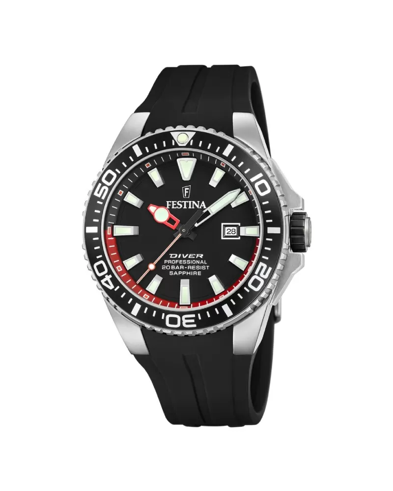 Pánské quartzové hodinky, které mají datumovku. Vodotěsnost je 20 ATM, takže jsou hodinky vhodné pro potápění do hloubky 50 metrů. Hodinky mají safírové sklíčko. Hodinky mají kaučukový řemínek a ocelové pouzdro.