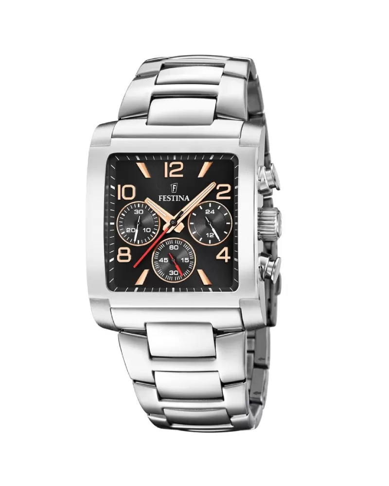 Značka Festina se pyšní více než stoletou tradicí na světovém trhu, která začíná roku 1902 v jedné švýcarské hodinářské manufaktuře v městečku La Chaux de Fonds. Věnovala se výrobě mechanických hodinek a to do roku 1984, kdy značku převzal Miguel Rodriquez a začal i se stojky quartzovými. Nyní je značka Festina součástí skupiny Festina Group se sídlem v Barceloně a s výrobními centry ve Švýcarsku, Španělsku a Asii. Své hodinky dodává do hodinářství po celém světě. Do povědomí zákazníků se zapsala především modelovou řadou Tour de France. Festina Vám však může nabídnout celé spektrum dámských i pánských modelů od sportovních, jako je řada Tour de France, tak i elegantní kolekce jako je Mademoiselle. Hodinky značky FESTINA nikdy nezaměníte s jinou značkou. Jsou originální, nápadité a budou zároveň i dokonalým šperkem. Švýcarská značka hodinek FESTINA vyniká svým moderním designem a prvotřídní kvalitou. A to všechno za velice příznivou cenu.