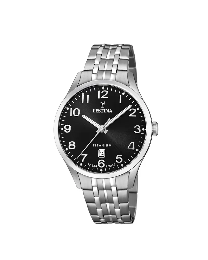 Krásné, jednoduché a velmi elegantní hodinky Festina najdete v kolekci Titanium Date. Z titanu mají jako celé poudzro tak některé modely i tah. Odolné a lehké hodinky v klasické provedení ocení každý elegantní muž či žena. V kolekce najdete mnoho variant provedení. Od 5 až po 10 atmosfér vodotěsnosti, různé velikosti číselníku a různé varianty řemínku. Poznejte celou kolekci titanových hodinek Festina Titanium Date.