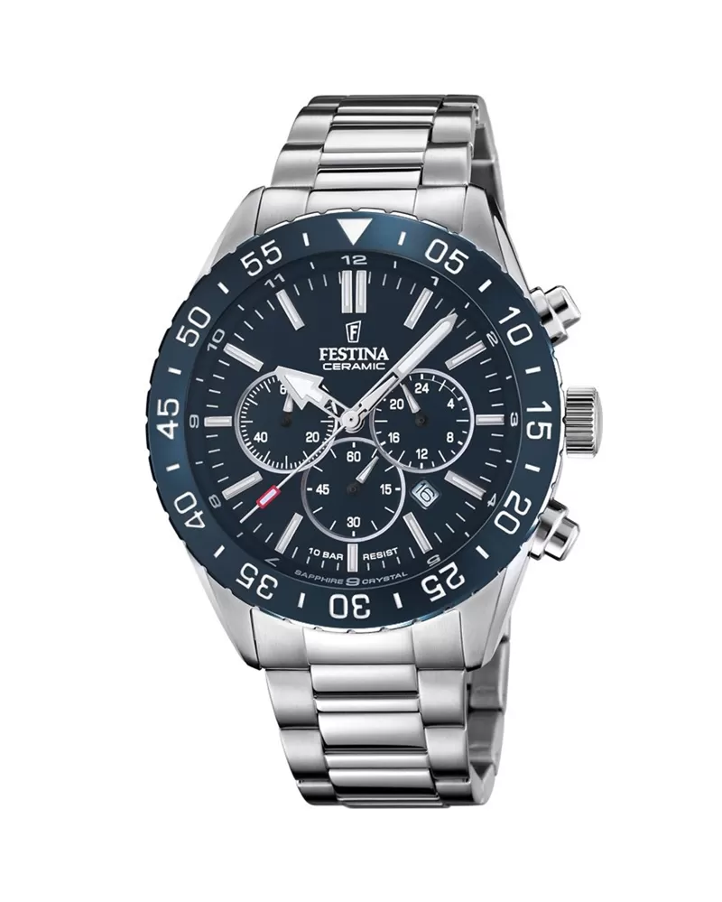Pánské hodinky s chronografem z kolekce Ceramic. Ocelové pouzdro je osazeno safírovým sklem a keramickou lunetou. Díky vodotěsnosti 10 Atm se můžete s hodinkami potápět bez přístroje. Hodinky jsou určeny pro muže co mají v oblibě sportovní doplňky.