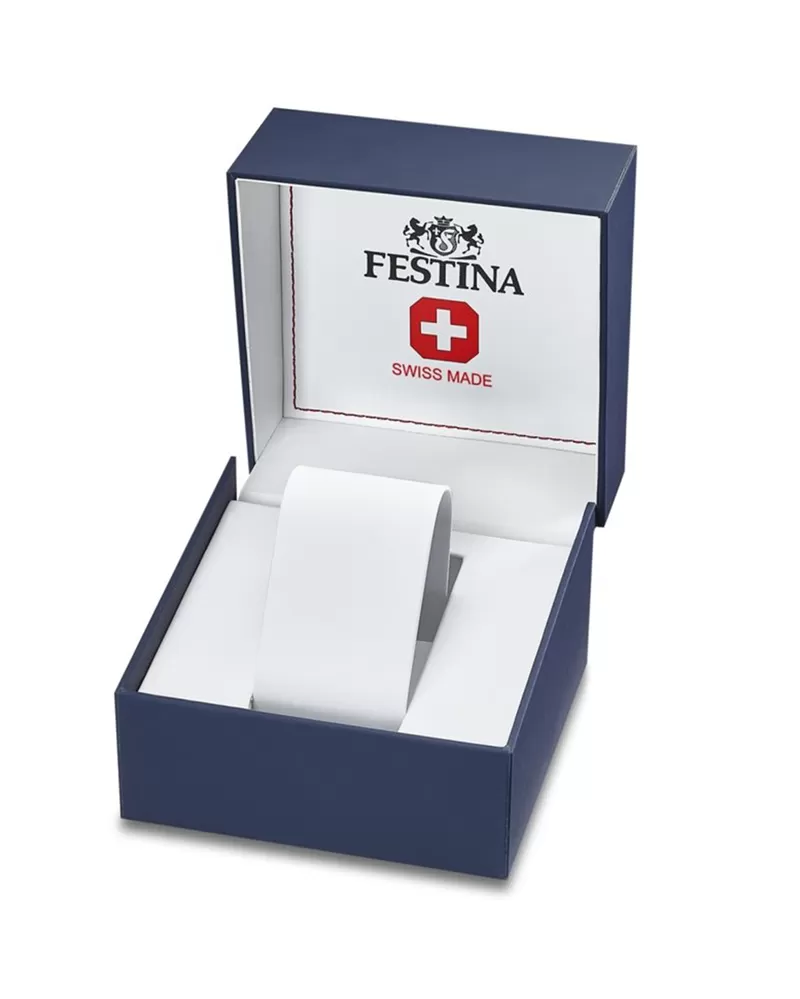 Krásné, jednoduché a velmi elegantní hodinky Festina jsou vyrobeny z chirurgické ocele, která je velmi pevná a houževnatá. Hodinky mají kulaté pouzdro, přehledná ciferník s datumem, který je umístěn na pozici tří hodin.
