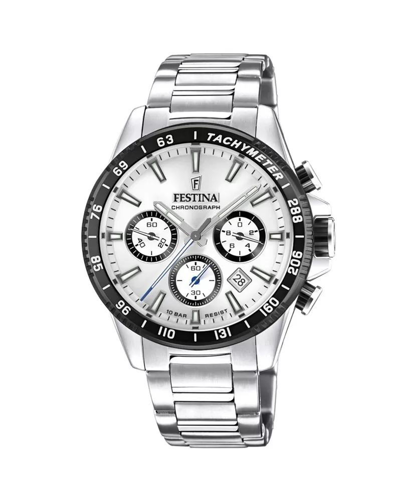 Sportovní model pro muže má pevné kulaté ocelové pouzdro zdobeno pevnou tachymetrickou lunetou. Řemínek hodinek je také vyroben z chirurgické ocele. Hodinky disponuje vodotěsností 10 ATM, takže se můžete s hodinkami potápět bez dýchacího přístroje. Ozdobte své zápěstí kvalitními hodinkami a udělejte dojem svým dokonalým vkusem.