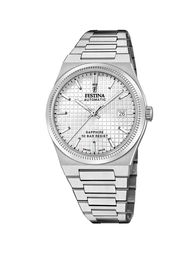 Pánské hodinky Festina 20028/1 z řady Swiss Made jsou moderním modelem vyznačujícím se jednoduchým a elegantním provedením. Pokud hledáte elegantní hodinky se švýcarským a automatickým strojkem za skutečně dostupnou cenu, kolekce Festina Swiss Made je více než příhodnou volbou. Festině se v ní podařilo skloubit hned několik oblíbených vlastností, kterými si vás hodinky získají. Pánský model Festina F20028 nabídne především vysoce elegantní vzhled, který bude zdárně sekundovat i společenskému obleku, safírové sklíčko odolné vůči jakémukoliv poškrábaní a voděodolnost 10 ATM, díky které zvládnou i plavání. Jednoduchá úprava číselníku s indexy je skutečná klasika. Praktickou stránku hodinek doplňuje také celoocelový tah.