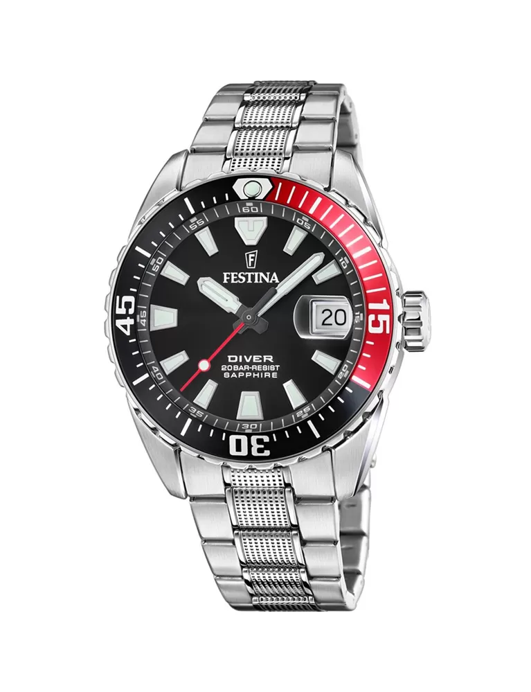 Hledáte doplněk hodný pravého gentlemana? Tím pravým jsou pánské hodinky Festina, kterými tato španělská značka vzdává hold tradičnímu hodinářství. Jejich černý ciferník krytý safírovým sklíčkem zdobí luminiscenční ručičky a indexy, které zajišťují perfektní čitelnost času i za snížené viditelnosti. Na pozici 3 najdete ukazatele data. Pouzdro korunované výraznou lunetou je vyrobené z té nejkvalitnější ušlechtilé oceli. Rozhodně oceníte i voděodolnost až do 20 BAR, díky které si můžete s hodinkami zaplavat a jsou vhodné i pro potápění. Festina necílí na milovníky vysoké hodinařiny, ale na muže, kteří chtějí dostupné hodinky v nadčasovém designu, který Festina rozhodně umí.